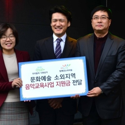 29일 오후 낙원악기상가 4층 아트라운지 멋진하늘에서는 피아니스트 조재혁의 렉처 콘서트 ‘클래식 파라다이스’가 끝난 뒤 ‘문화예술 소외지역 음악교육사업 지원금’ 전달식이 진행됐다.