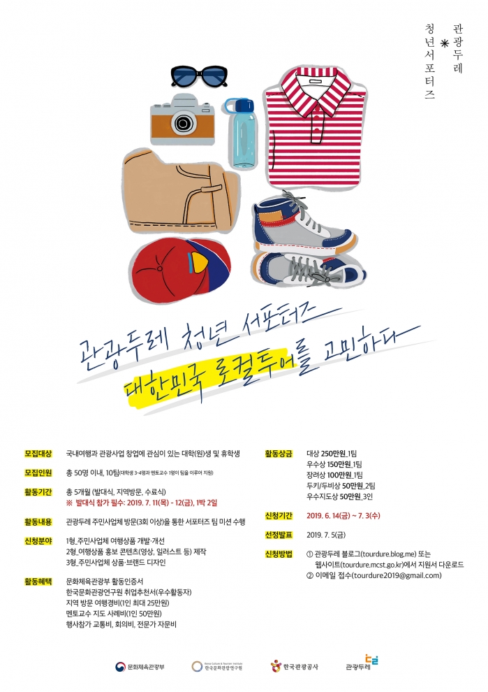 문화체육관광부와 한국문화관광연구원은 7월 3일(수)까지 ‘관광두레 청년 서포터즈 5기’를 모집한다.