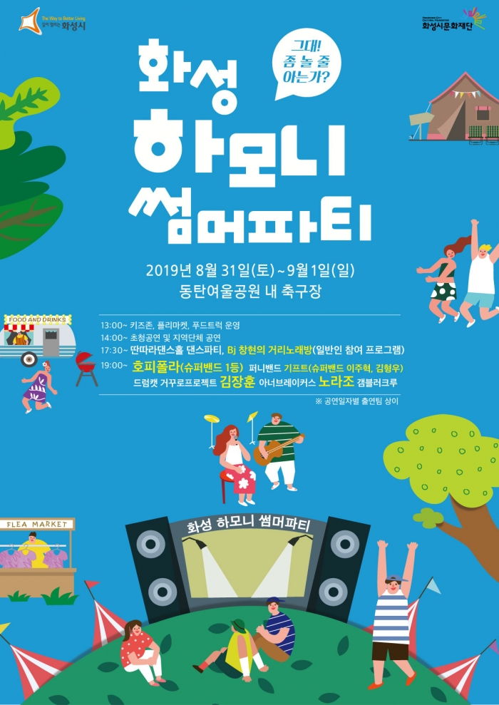 화성시문화재단(대표 최형오)은 8월 31일과 9월 1일 이틀간 동탄 여울공원 내 축구장 일원에서 ‘2019 화성 하모니(和聲, Harmony) 썸머파티’를 개최한다고 밝혔다.