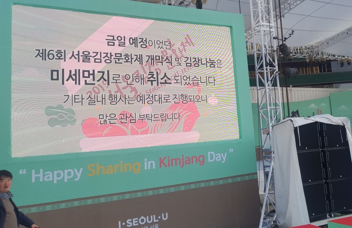 1일 서울시청앞 서울광장에서 열릴 예정이던 2019 서울김장문화제 개막식 및 김장버무림 행사가 미세먼지 주의보 "메우 나쁨"이 발령되어 취소 및 연기되었다.