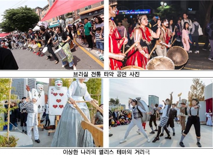 브라질 전통 타악 공연과 이상한 나라의 엘리스 테마의 거리극으로 진행되는 퍼레이드는 서울로 7017 상부에서 시민 500명과 함께 춤을 추며 행진한다.(14:30~15:30, 장미마당~목련마당)