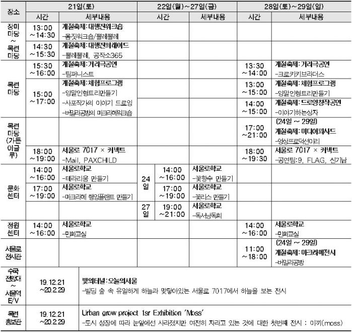 서울로 7017 겨울축제 서울로화이트크리스마스 21일부터 29일까지