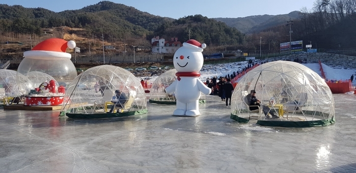 홍천강 꽁꽁축제가 이상기온에 의해 얼음두께가 얇아 일주일 연기하기로 결정했다.
