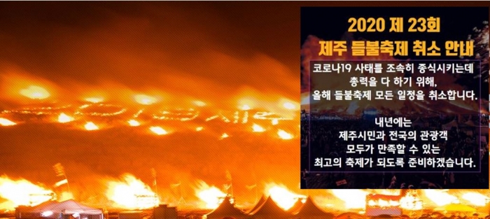 제주시는 지난 14일 코로나19 여파로 어려움을 겪고 있는 지역경제와 관광분야의 전환점을 마련키 위해 제주들불축제를 개최키로 발표하였으나, 그 이후 양성 확진자가 발생하여 9일만에 결정이 변경되었다.