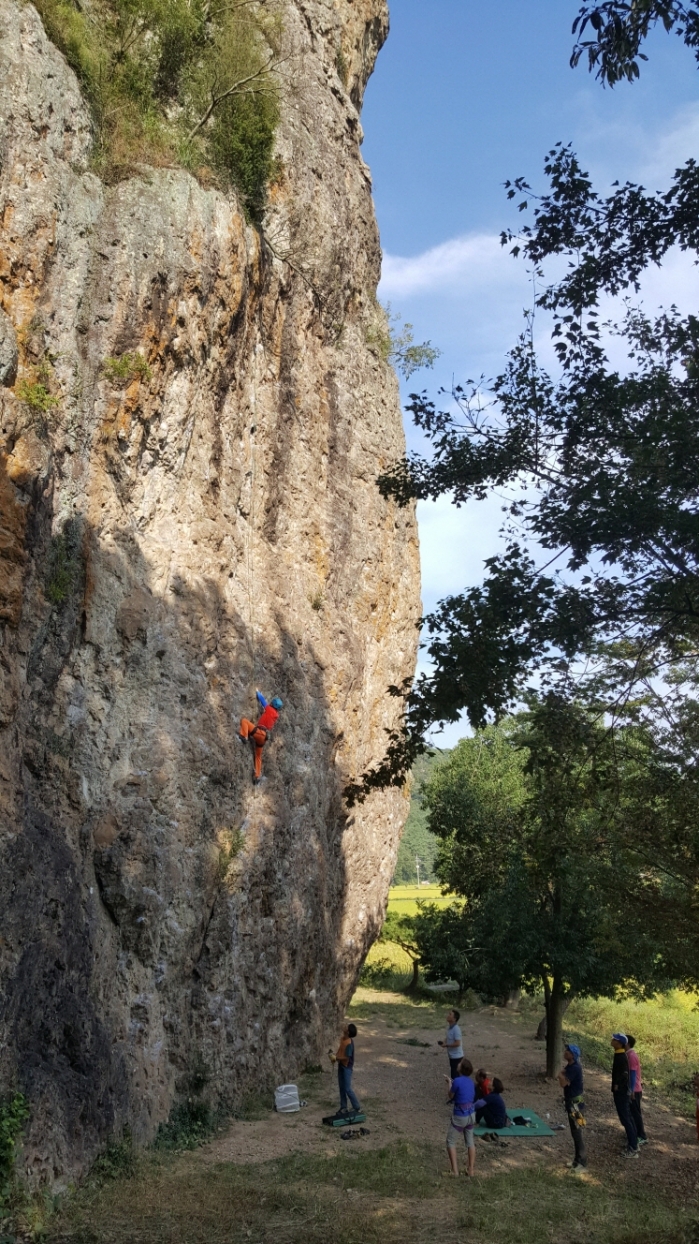 높이 60m, 폭 50m에 달하는 아산면 계산리 할매바위는 수직벽과 오버행(수직 이상의 경사도를 가진 바위의 한 부분)을 이루면서도 큼직큼직한 홀드(돌멩이 등 잡을 수 있는 부분)와 잘 발달된 포켓홀드(홈이 있는 부분) 등이 있어 클라이머의 마음을 흡족하게 하고 있다.