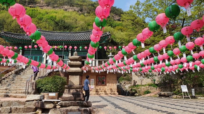 △ 부처님 오신 날 감악산 범륜사의 대웅전 앞