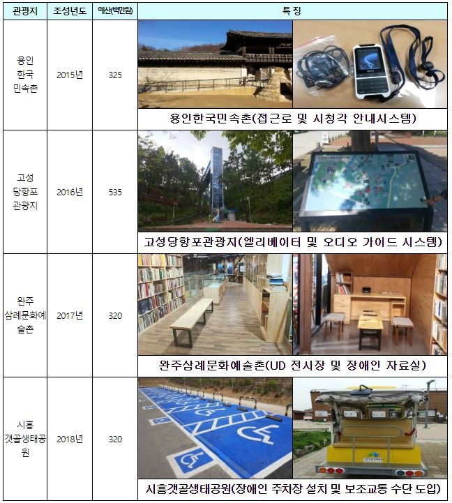 문체부 정책 담당자는 “’21년부터는 추가적으로 무장애 관광정보 통합 온라인 창구(웹페이지)를 구축해 관광지의 장애인용 화장실 설치 여부, 경사도 정보, 휠체어 대여 여부 등 무장애 관광정보에 대한 접근성을 강화하고 이미 조성된 열린관광지도 계속 모니터링해 고장 나거나 파손된 시설들을 추가로 보수할 수 있도록 지원할 계획”이라며, “열린관광지는 전 국민의 관광 향유권을 보장하고 고령사회에 대비해 관광 환경을 정비하는 중요한 사업인 만큼 지자체의 많은 관심과 참여를 부탁드린다”고 말했다.
