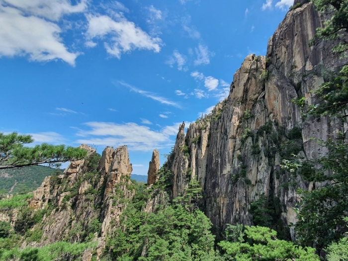 ‘한국의 장자제(張家界)’라는 말처럼 코스 곳곳에서 집채만 한 바위와 수직의 암벽의 뛰어난 풍광을 볼 수 있다. 바위 사이에 뿌리를 내리고 하늘을 향해 자라는 금강송의 의젓한 모습도 놓칠 수 없는 장관이다.