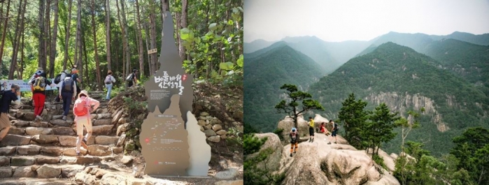 승우여행사는 두타산 정상이 아닌 베틀바위에 오르는 새로운 코스로 트레킹한다. 무릉계곡 주차장에서 시작해 관리소사무소~베틀바위전망대~미륵바위~두타산성~학소대를 지나 무릉계곡 주차장으로 돌아오는 원점 회귀 코스다.