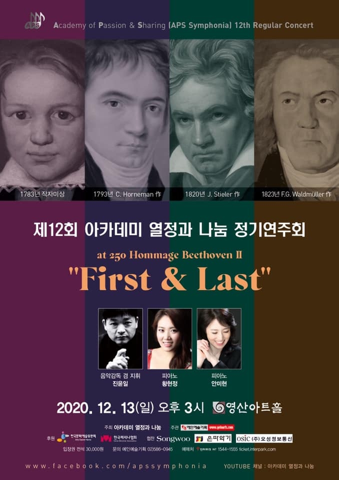 제12회 APS 정기연주회도 잇따라 열린다. 12월 13일(일) 오후 3시 영산아트홀에서 만날 수 있는 아카데미 열정과 나눔의 공연도 크게 기대되는 부분이 250 시 250 분에 Hommage Beethoven ll 처음이자 마지막이라는 것이다.