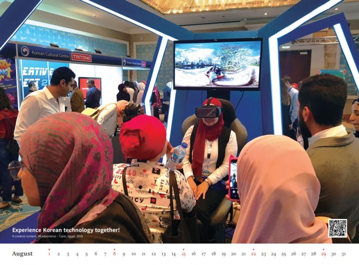 * (1월) 뉴욕-태권도, (2월) 프랑스-전통공예, (3월) 베트남-전통악기, (4월) 호주-한복, (5월) 멕시코-바둑, (6월) 독일-평화기원 길놀이, (7월) 중국-한식, (8월) 이집트-가상현실(VR)체험, (9월) 벨기에-사물놀이, (10월) 캐나다-영화, (11월) 폴란드-전통유물, (12월) 러시아-케이팝