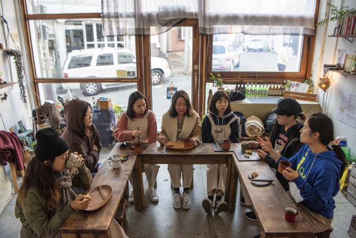 ▲ 주간 괜찮아마을 참여자들이 마을 주민식당에서 함께 아침을 먹고 있다