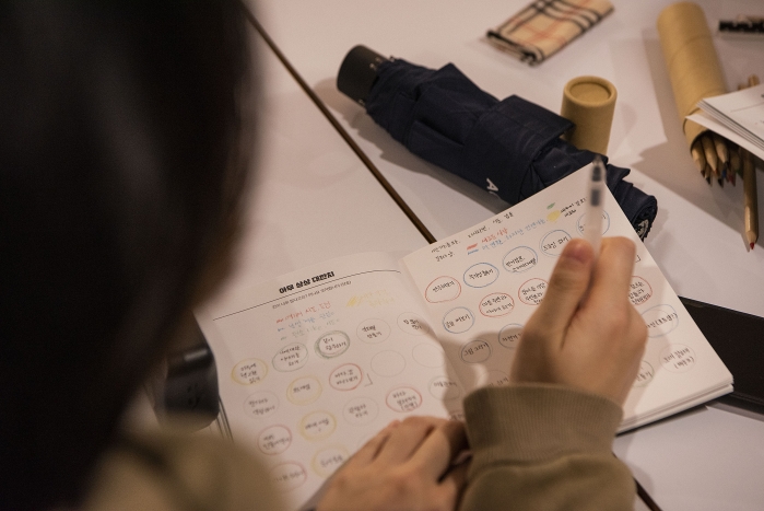 ▲ 주간 괜찮아마을의 한 참가자가 스스로 무엇을 하고 싶은지를 적고 있다