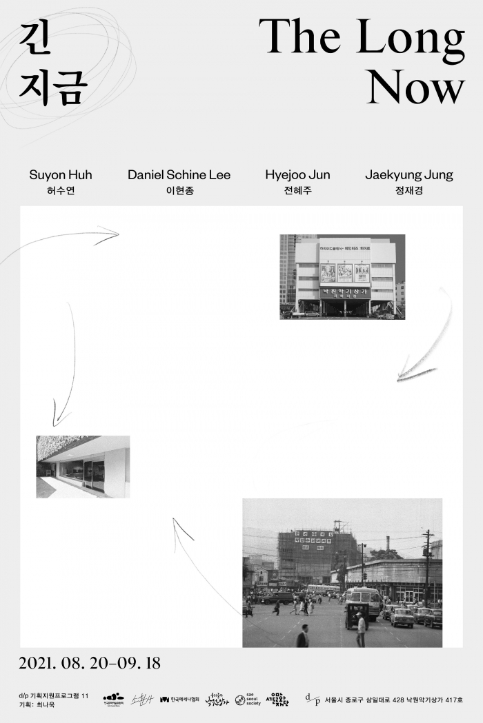 9월 18일까지 ‘긴 지금 The Long Now’이라는 제목으로 열리는 이번 전시회는 낙원악기상가 신진 기획자 지원 프로그램을 통해 선발된 최나욱 큐레이터가 기획했다. 건축학을 전공한 최나욱 기획자는 서울의 대표 근대문화유산인 낙원악기상가에 자리잡은 전시장 d/p가 현대미술 담론을 이끌어가는 모습을 보며 ‘시의적절하다’는 의미가 매우 임의적이고 상대적이라는 주제의식을 갖고 전시를 기획하게 됐다.