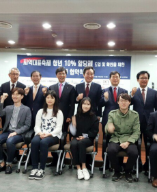 미리보기한국매니페스토실천본부는27일11시한국프레스센터에서"지역대표축제34세미만청년10%할당제’업무협약을진행했다.협약식에는박원순서울시장,남경필경기도지사,안희정충남지사,이낙연전...