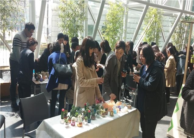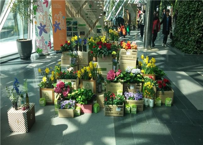 또 4.12(토)까지 서울시청 1층 로비에서는 그린 리사이클링(Green Recycling)을 컨셉으로 재활용 원예작품 및 목공예품을 전시하는 ‘서울, 꽃으로 피다’展과 ‘숲에서 온 선물’展이 열린다. ‘서울, 꽃으로 피다’展은 생활주변의 재활용 소재를 활용한 다양한 원예작품 전시와 함께 화장품 공병과 상자, 박스를 활용한 가드닝 전시, 공병 화분 만들기 체험 등이 진행되며, 친환경 사회공헌 GREENCYCLE(그린사이클) 캠페인을 진행중인 아모레퍼시픽과 공동협력하여 추진하게 되었다.