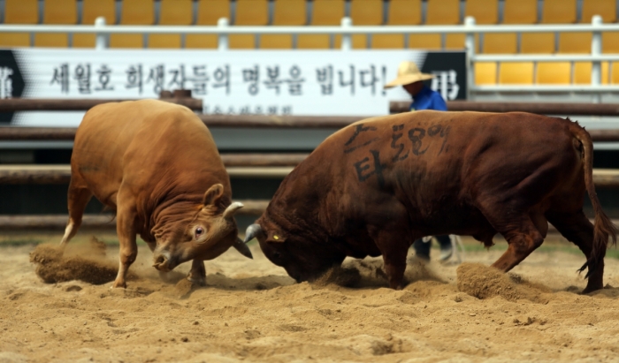 제4회 의병의 날을 기념해 개최되는 이번 민속소싸움대회에는 역대 전국 어느 대회보다 많은 383마리의 싸움소가 출전한 가운데 우주(牛主)들은 세월호 참사 희생자 유족들과 아픔을 같이 하는 뜻에서 노란 추모리본을 달고 경기에 임했다.