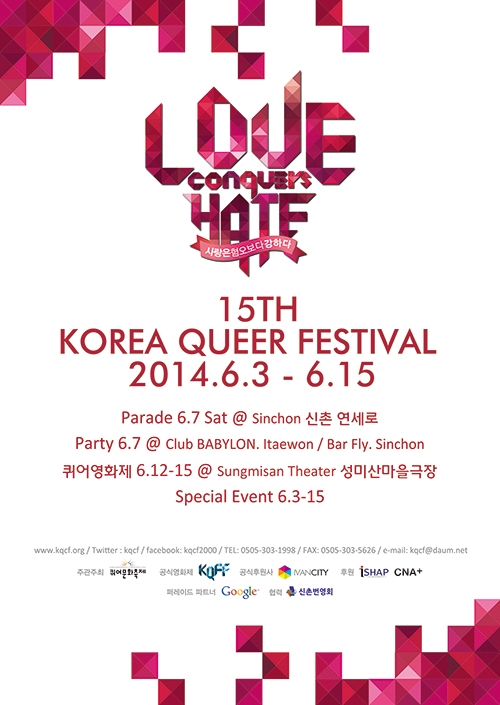 한국 성소수자의 자긍심 고취와 일반인들의 이해를 높이고자 지난 2000년에 시작한 퀴어문화축제(Korea Queer Festival)가 올해로 15회째를 맞으며 신촌 차없는거리에서 축제의 하이라이트를 장식했다.