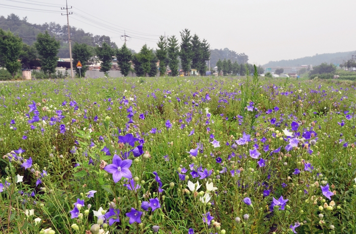 <영원한 사랑>이라는 꽃말을 가지고 있는 도라지 꽃밭을 찾아 자연치유도시 제천을 방문하는 사람들이 늘고 있다.