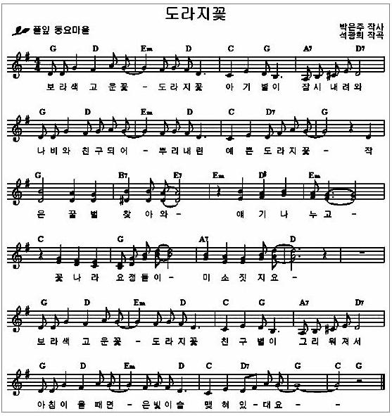 박은주 작사 석광희 작곡 도라지꽃의 노랫말이다.