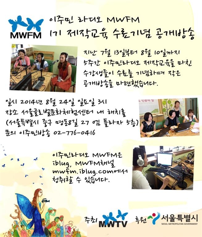 서울시는 오는 9월부터 외국인주민 방송매체인 이주민방송(MWTV)과 공동으로 외국인주민의 서울살이에 대한 이야기를 라디오방송으로 제작 송출한다고 밝혔다.