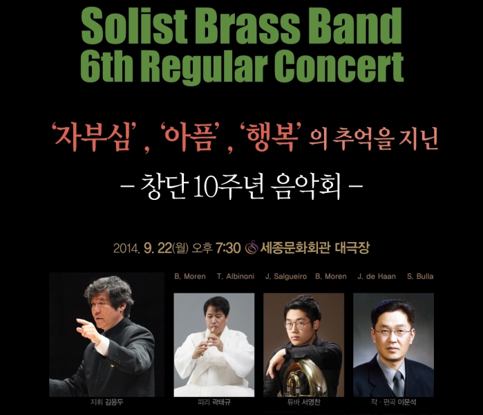 제6회 솔리스트 브라스밴드 정기연주회가 9월 22일 19:30 세종문화회관 대극장에서 펼쳐진다.