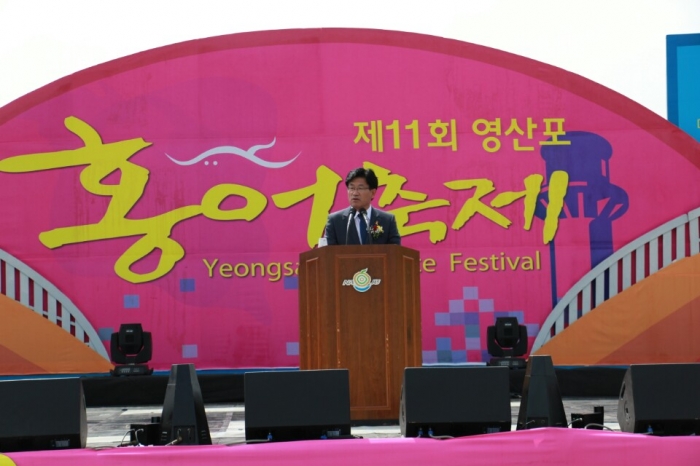 강인규 나주시장이 17일 오후 2시 열린 “제11회 영산포 홍어축제” 개막식에서 인사말을 하고