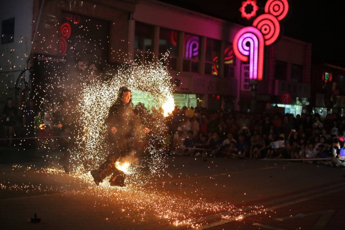길놀이 퍼레이드는 온몸에 용과 호랑이 바디페인터, 용호무예단, 시민커뮤니티댄스단, 목포풍물패연합, 어린이용호단, 시민워크숍단 등 20여팀이 행렬에 참여했고 그 뒤를 이어 관람객들이 엄청나게 몰려들어 봇물이 터지듯 대성황을 이뤘다.