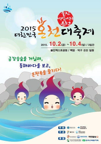 경상북도는 2일부터 3일간 행정자치부와 공동으로 전국관계자가 참여한 가운데 ‘2015 대한민국 온천대축제’를 개최한다고 밝혔다.
