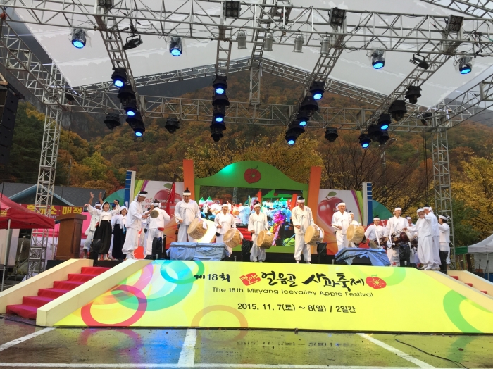 대한민국 명품 경남 밀양 얼음골 사과를 알리는 제18회 밀양 얼음골 사과축제가 11월7일 산내면 얼음골 주차장에서 빗속에서 개막했다.