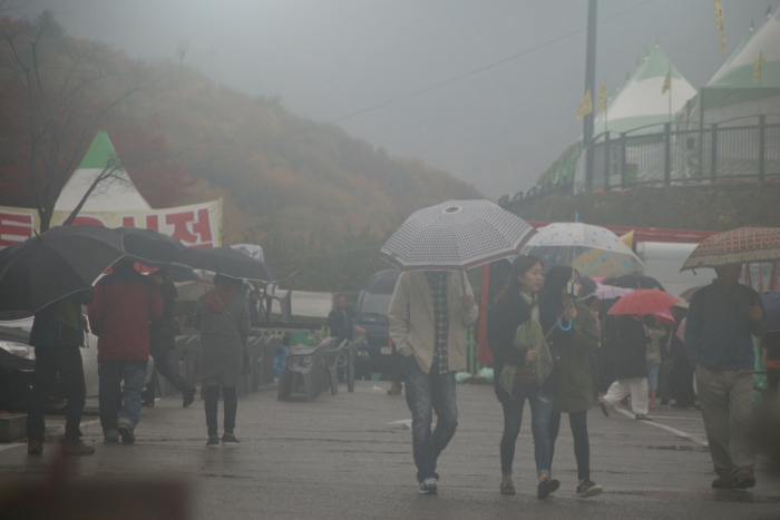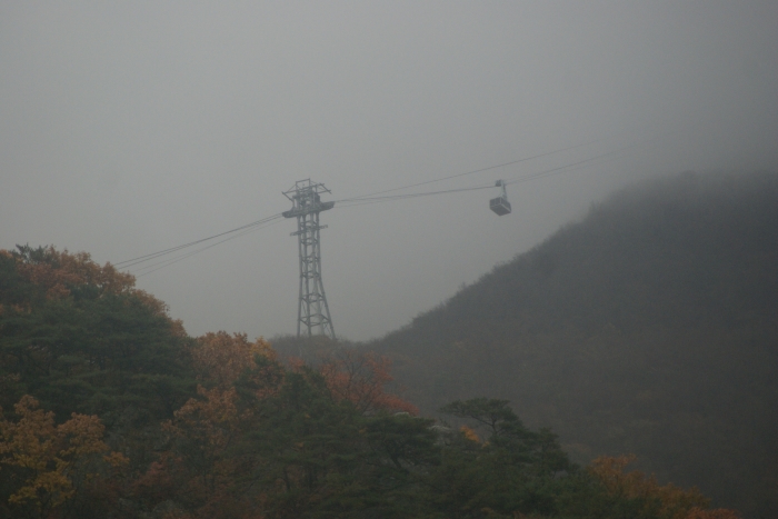 밀양의 축제축제장에서 도보로 5분 거리에 있는 얼음골 케이블카가 본격적인 단풍철을 맞이해 천혜의 자연경관을 자랑하는 얼음골의 경치를 보여주려 손님을 기다렸으나 비가 오는 관계로 손님의 발길은 많지 않았다.