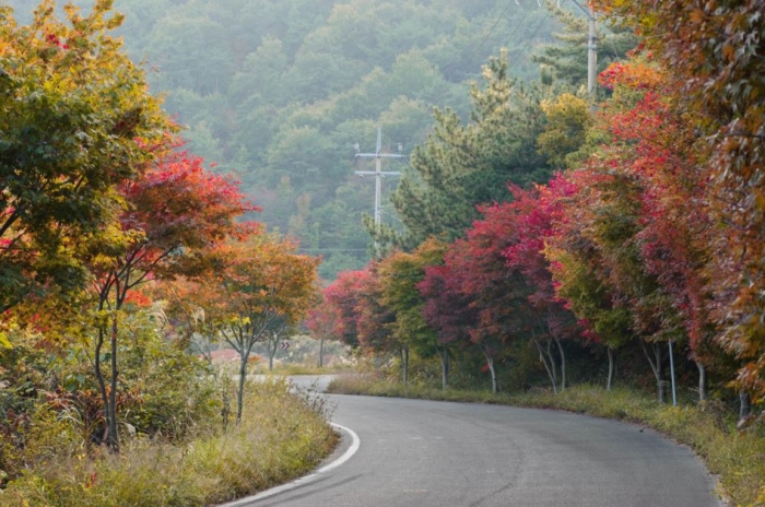 삼동면 봉화삼거리에서 편백자연휴양림에 이르는 내산로는 약 5km에 이르는 2차선의 넓지 않은 길이지만, 흔들리는 도로에 따라 양쪽에 늘어선 단풍나무들이 선홍색의 아름다운 빛깔을 뽐내며 방문객들을 맞이한다.