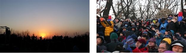 올해 해뜨는 시간이 7시 47분이요.. 근데 2시간 전에는 일어나야 저 인파를 물리치고 좋은 자리 차지하겠네요