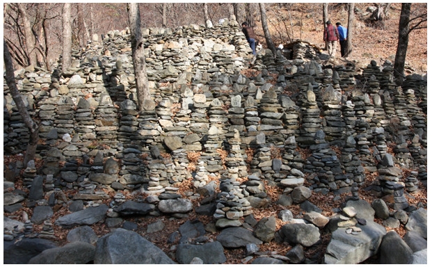 1) 강릉 노추산 삼천 모정탑은 차옥순 할머니가 1986년부터 2011년까지 세상을 떠나기 전까지 26년간 홀로 쌓은 돌탑이다. 결혼 후 아들 둘을 잃고 남편이 정신질환을 앓는 등 집안에 우환이 끊이지 않자 가정의 평화를 기원하며 3천개의 돌탑을 쌓았다고 해 "삼천 모정탑"으로 불린다.