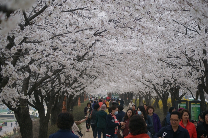 [포토뉴스] 서울 서부간선도로변의 안양천 제방을 따라 꽃놀이 상춘객들이 찾아 봄기운을 만끽하고 있다. 성산대교 남단부터 영등포구 - 구로구 - 금천구를 잇는 기나긴 벗꽃길을 따라 연일 시민들이 찾아 꽃놀이를 즐기고 있다. 이번 벚꽃길은 4월 1일부터 10일까지가 가장 볼만할 것이라고 한다.