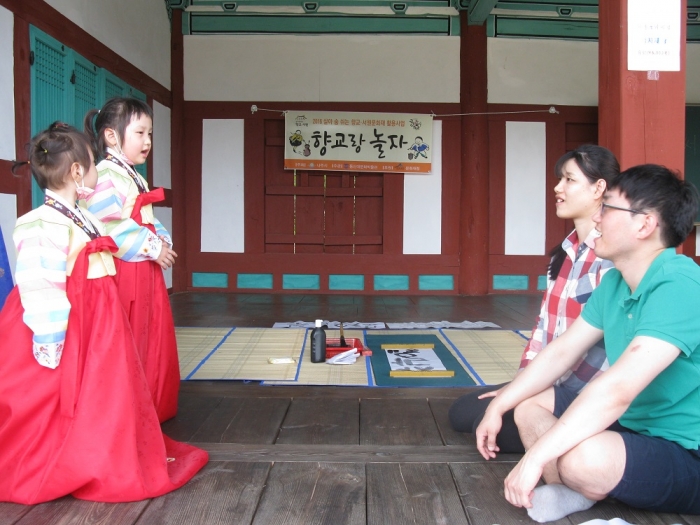 ‘향교랑 놀자’에서는 선비체험, 풍속화 속의 선비놀이, 전래놀이, 금성별곡 목판서화 체험, 선비체험중 과거시험을