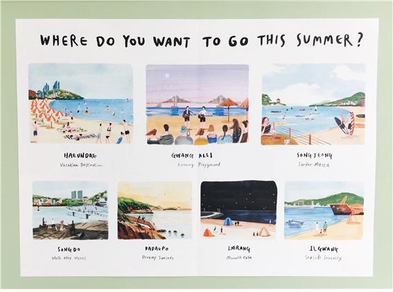 반면 커버 속지는 ‘올 여름 가고 싶은 해수욕장은?’을 주제로, 해운대·광안리·송정·송도·다대포·임랑·일광 등 부산 7개 해수욕장의 특색을 살린 일러스트레이션을 배치했다. 이는 부산 출신 신진 일러스트레이터와의 협업을 통해 수채화풍으로 각 바다를 트렌디하게 재구현했다.