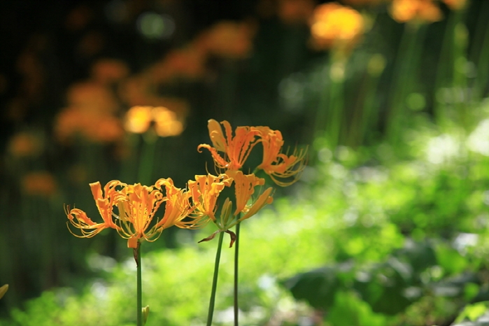 상사화축제로 잘 알려진 영광 불갑사에 진노랑상사화가 활짝 피어나 관광객들의 눈길을 끌고 있다.