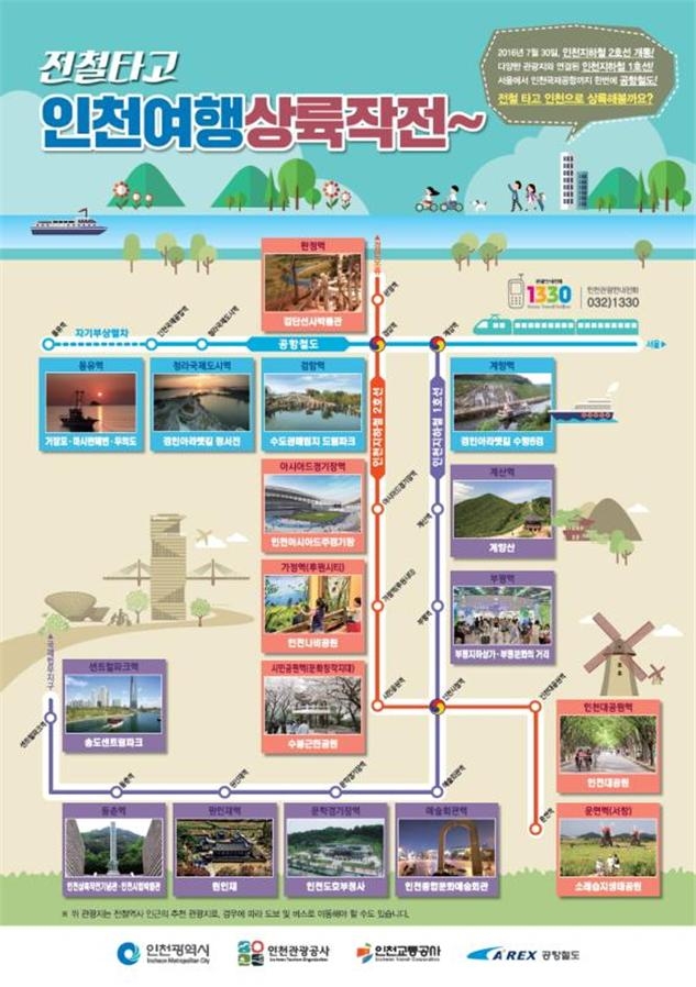 인천관광공사(사장 황준기)는 인천광역시(시장 유정복)와 인천교통공사,   공항철도(주)와 함께, 지난달 말 검단오류역에서 운연역을 잇는 인천지하철   2호선 개통기념으로 <전철타고 인천여행상륙작전> 프로모션을 개최한다.