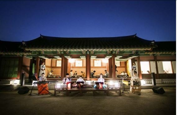 이후 ▲ 자리를 옮긴 관람객들은 달빛을 받아 연못에 비친 마치 한 폭의 그림처럼 신비한 경회루의 누상에 올라 고요한 밤하늘과 함께 감상하는 수려한 독주를 들을 수 있다. 평소 관람이 허락되지 않은 경회루에서 야경을 바라보며 전통음악을 듣는 경험은 ‘경복궁 별빛야행’에서만 느낄 수 있는 감동을 선사할 것이다.