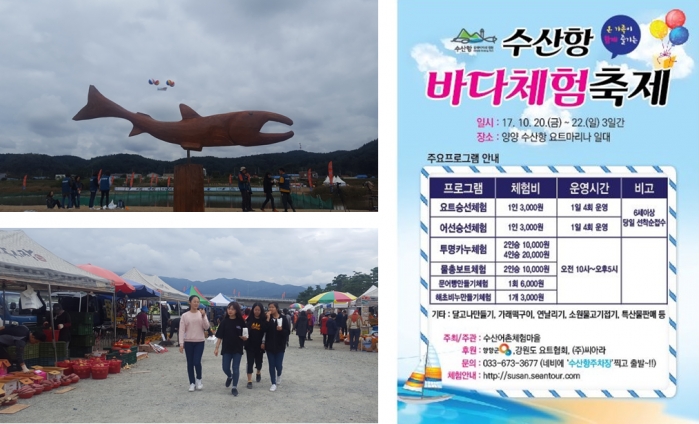특히 지금 수산항에서는 수산어촌체험마을이 주관하는 ‘바다체험축제’가 펼쳐져 투명카누 및 요트 체험, 어선 승선, 해초비누 만들기, 문어빵 만들기 체험 등을 즐길 수 있다.