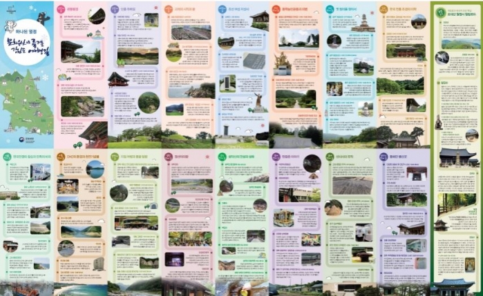 이번에 배포되는 「강원도 문화재 지도」는 주제별 문화유산 방문 답사코스 16선을 선별하여 코스별 문화유산에 얽힌 이야기와 관련 사진을 제공하고 있으며 국내외 관광객을 위해 한글판과 영문판 2종으로 제작되었다. 기존의 일반 관광지도와 차별화된 ‘이야기가 있는 구성’으로 관광객의 흥미를 유발할 것으로 기대된다.