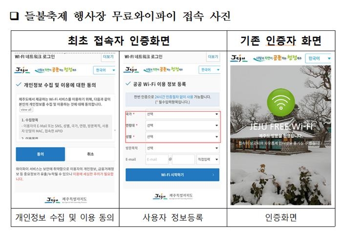 ❍ 와이파이 접속 데이터 확보를 위해 방문객들은 와이파이에 접속 후 간단한 사용자정보를 등록하는 인증절차를 거쳐야 한다.