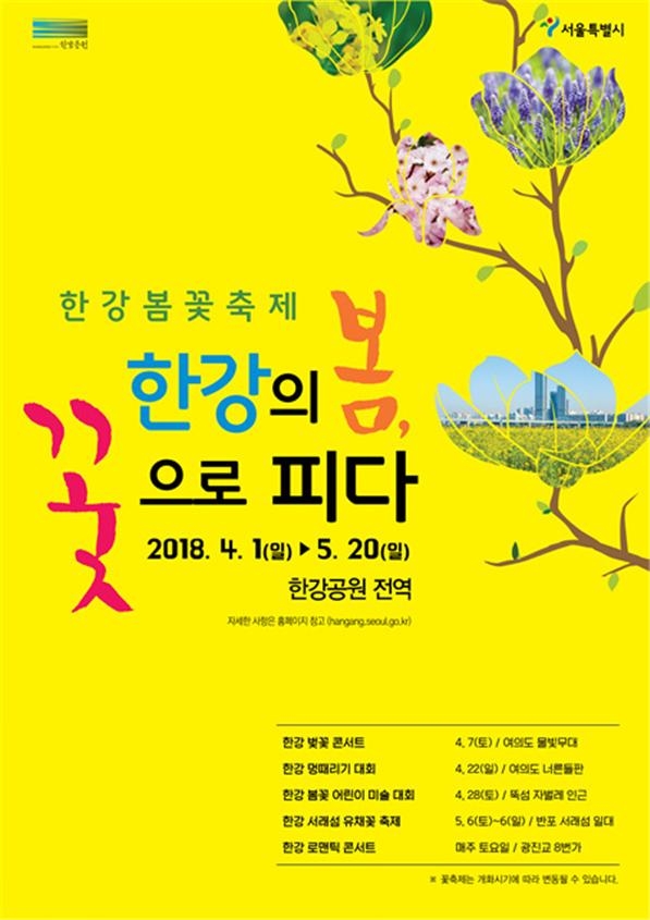 서울시(한강사업본부)는 성큼 다가온 봄과 함께 4월 1일(일)부터 5월 21일(일)까지 51일간 한강공원 전역에 펼쳐지는 봄꽃명소와 이와 함께 즐길 수 있는 문화프로그램으로 가득한 <한강봄꽃축제>를 개최한다고 소개했다.