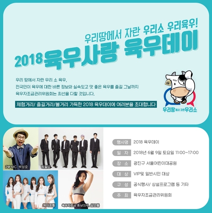 박대안 위원장은 “KPOP 초청공연과 어린이들을 위한 다양한 체험 이벤트 등 다양한 프로그램을 즐기는 모습을 보며, 많은 이들이 ‘육우’에 대해 관심과 사랑을 가져주는 계기가 되었으면 한다”고 말했다.