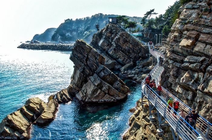 가을이 산에만 물든다는 건, 잘 모르고 하는 말이다. 푸른 하늘과 코발트블루의 동해바다를 본다면 탄성을 내지를 테니 말이다. 매주 금~일요일 청량리역 7시 5분경 출발하는 무궁화호에 오르면 볼 수 있는 천연기념물 제437호 정동심곡 바다부채길은 동해 탄생의 비밀을 간직한 국내 유일의 해안단구이다. 약 2.86km 탐방로를 걷다 보면 탁 트인 바다와 수평선으로 이어진 가을하늘에 아찔한 기분이다. 정동진 동해바다를 보고 주문진어시장에서 든든한 식사를, 안목커피거리에서 따듯한 커피 한 잔을 즐긴다면 어디 빠지지 않는 가을여행 추억이 된다.