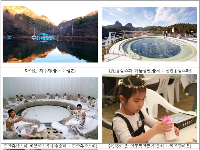 전북 진안 코스는 80여 개의 각기 다른 돌탑이 골짜기를 가득 메운 마이산 탑사를 구경하고 홍삼스파에서 노천스파를 비롯한 다양한 스파를 즐긴 뒤에 다음날 체험마을에서 공예 체험과 마을 지역 농산물로 만든 건강식 연잎밥으로 일정을 마무리 하는 코스다.