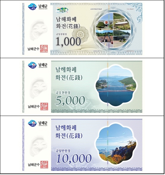 군은 지역화폐의 확대 도입을 위해 지난해 8월부터 계획을 수립해 남해화폐 발행 및 운영에 관한 조례 제정을 완료했으며, 전자식 화폐 도입을 위해 KT와 업무협약을 맺는 등 화전(花錢)이 침체된 지역경제의 물꼬를 틔울 마중물이 될 수 있도록 업무 추진에 박차를 가해 왔다.