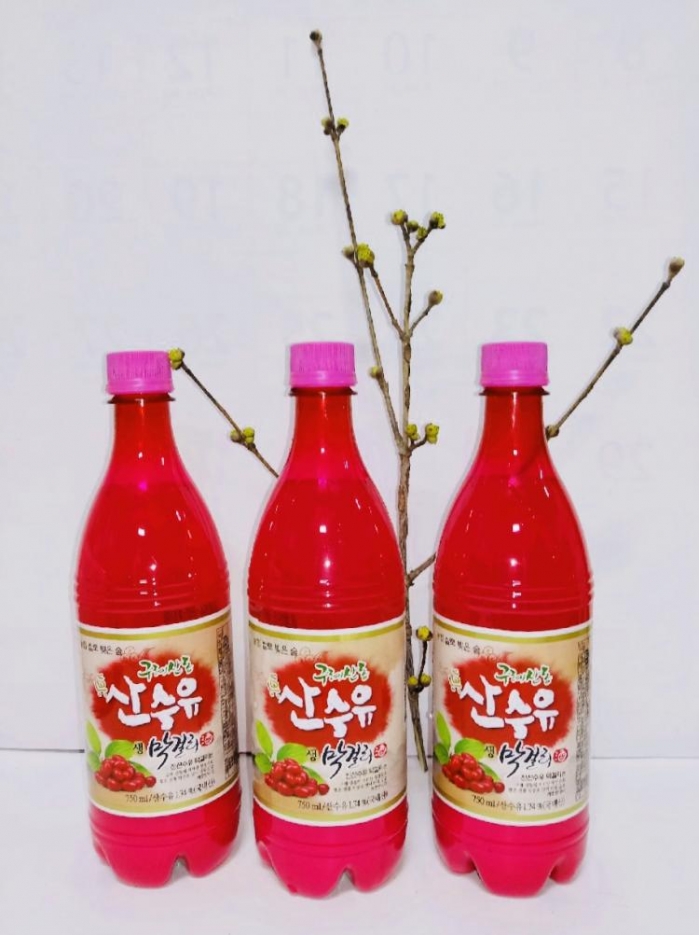 산수유 생막걸리는 전국 산수유 생산량의 68%를 차지하는 구례 산동면에서 지역 특산물인 산수유를 활용해 2015년 출시한 전통주다. 그동안 맛과 품질을 고급화해 2018년 도지사품질인증을 획득한 프리미엄 생막걸리다.
