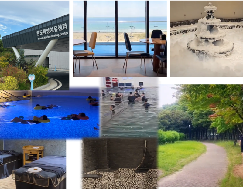 완도해양치유센터는 전국 최초로 문을 연 해양치유 시설로 해수와 해조류, 머드 등 완도의 해양자원을 활용한 딸라소 풀, 명상 풀, 해조류 거품 테라피 등 16개의 테파리실로 구성됐다.